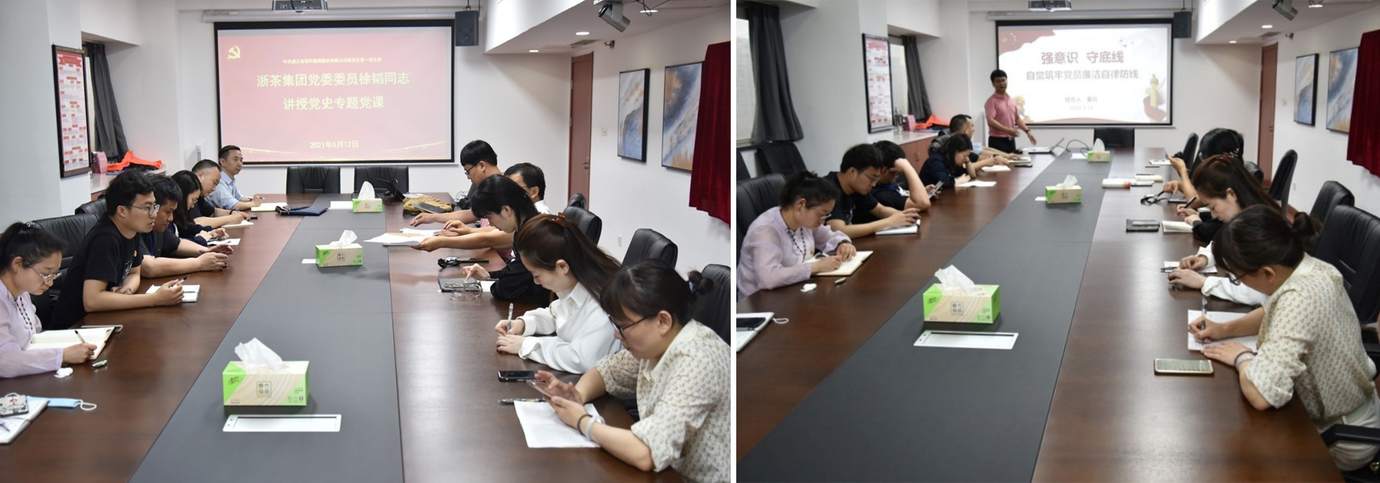活動圍繞廉潔從業主題,重點安排了學黨史、講廉潔黨課教育活動,徐韬委員以“學黨史講廉潔 永葆共産黨人本色”為題,給支部黨員講授了中共第一個反腐文件《關于堅決清洗貪污腐化分子的通告》、第一個反腐典型案例“黃克功案”、第一次反腐機制改革——建立中央監察委員會等知識。随後,支部書記夏兵向支部黨員同志作了廉潔黨課報告,強調廉潔自律的重要性,并結合浙江省典型案例問題,提醒大家警惕腐敗作風問題,嚴守廉潔底線,讓大家進一步理解政治建設是全面從嚴治黨的根本性建設,制度建設是全面從嚴治黨的重要保障。