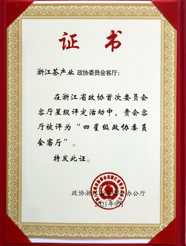浙江茶産業政協委員會客廳獲評“四星級委員會客廳”