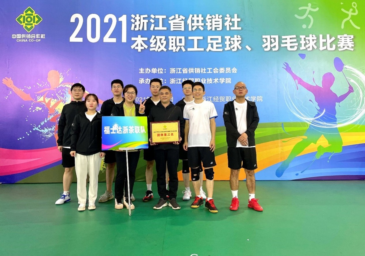 11月6日,由省供銷社工會主辦的“2021浙江省供銷社本級職工羽毛球比賽”在浙江經貿職業技術學院圓滿落幕。金年会、福士達集團聯隊最終在來自省供銷社機關、興合集團及成員企業的11支代表隊中,取得了第三名的好成績。集團職工蘇宇濤、周煜傑、查輝、鄭佳偉參與了本次比賽,集團工會主席王兵擔任領隊。