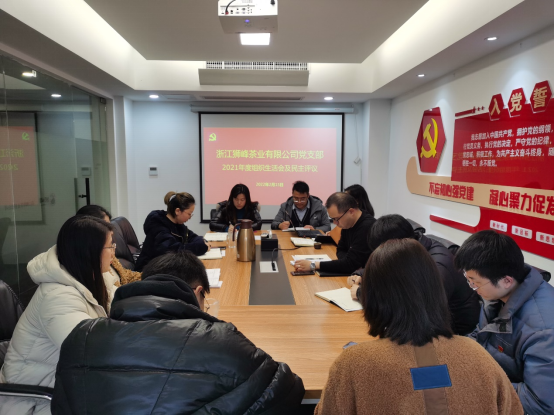 按照金年会黨委工作部署,2022年2月15日下午,金年会獅峰茶業黨支部召開組織生活會并開展民主評議黨員工作,集團黨委委員、支部書記陸耿林以普通黨員身份參會并主持會議。