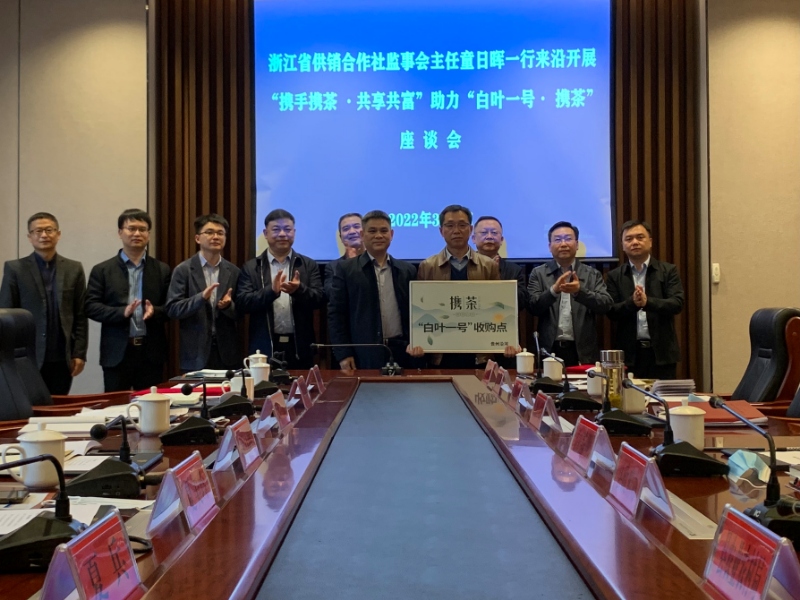 本次活動由省供銷社黨委委員、監事會主任童日晖和黨委委員、理事會副主任沈省文分别帶隊,組員有省供銷社監事會副主任夏美玲、茶葉處處長方志文,興合集團黨委副書記俞曉東、戰略發展部副部長劉琦,金年会董事長兼總經理毛立民、黨委書記陳星、黨委副書記王兵以及辦公室、獅峰茶業、川崎茶機和天香茶業相關負責人等。活動還得到了浙江省網商協會的大力支持,協會組織了謙尋、有贊、遙望等杭州互聯網企業同行,接下來将以此提升“白葉一号”“攜茶”網上銷售能力。