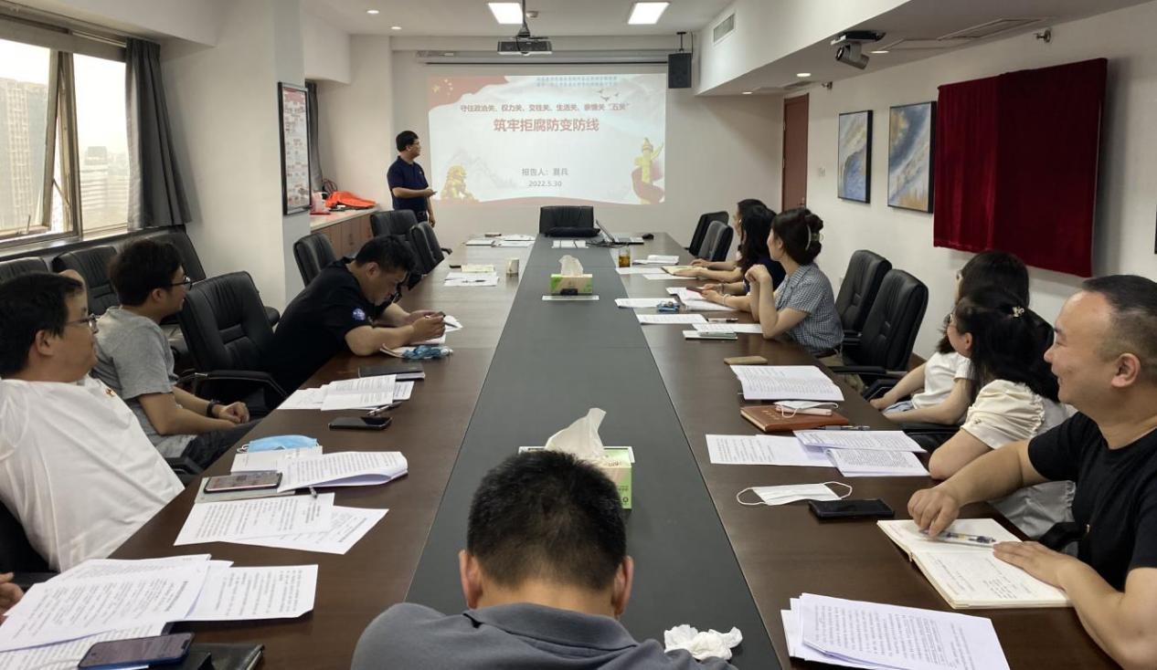 為進一步強化黨風廉政建設,營造風清氣正的集團發展環境,推進不敢腐、不能腐、不想腐,築牢拒腐防變防線,推動清廉社企建設。根據集團黨委關于開展拒腐防變守内心警示教育“六個一”活動有關工作部署及要求,5月30日,金年会第一黨支部集中開展了拒腐防變守内心警示教育“六個一”活動之專題研讨交流和提醒談話活動。集團黨委委員徐韬、夏兵以普通黨員身份參加活動。活動由黨委委員、支部書記夏兵主持。